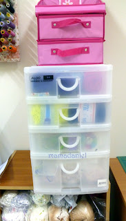 Inilah dia tempat simpan benang kita.. Asalnya rak plastik putih tu je..
